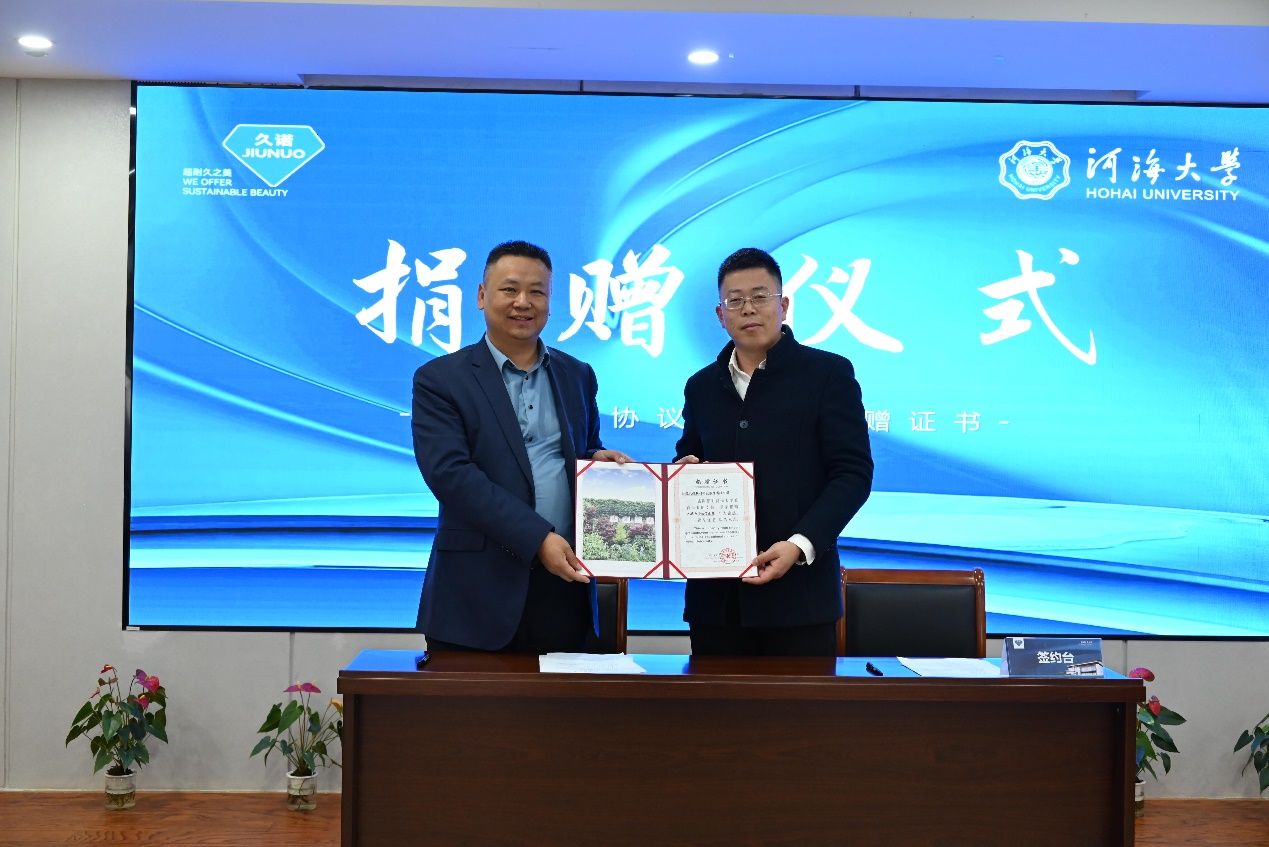 12月3日,江苏久诺新材科技股份有限公司向91毛巾哥 教育发展基金会捐资设立“久诺新材”基金,用于支持91毛巾哥 教育事业发展,基金下设 “久诺·菁材”优秀学生骨干奖学金、“久诺·晶彩”优秀教师奖励金、“久诺·竞彩”校园文化活动专项资金等项目。江苏久诺新材科技股份有限公司董事长王志鹏,91毛巾哥 党委书记陈伟刚、副院长宋丹、副书记辛绍权、师生代表参加捐赠仪式。仪式在江苏久诺新材科技股份公司举行。