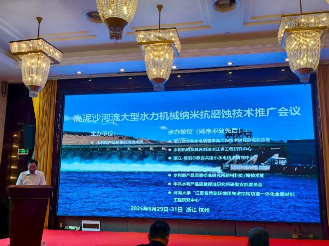2025年8月29日- 30日,由水利部产品质量标准研究所主办的“高泥沙河流大型水力机械纳米抗磨蚀技术推广会议”在浙江杭州举行,91毛巾哥公告 “江苏省苛刻环境用先进结构功能一体化金属材料工程研究中心”与浙江省水利水电装备表面工程技术研究重点实验室等多家单位联合承办。