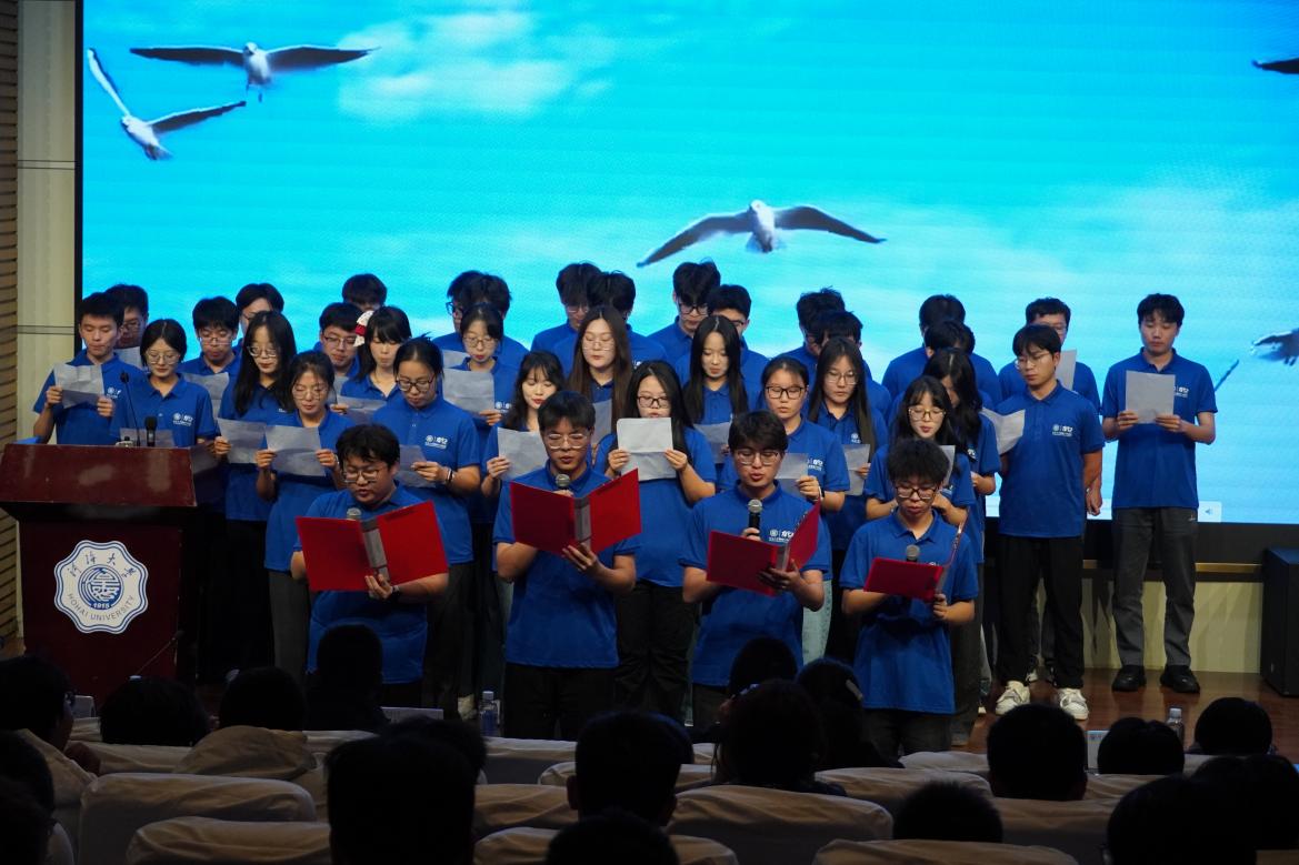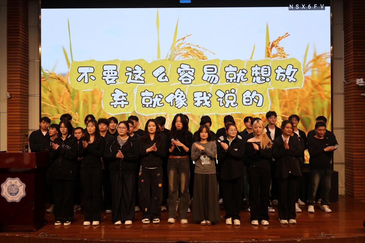 熟悉的前奏响起,材料四班的同学们以清澈的声线,唱出了对未来的追寻与初心的坚守。这首歌仿佛是对百十载河海历程的呼应,一代代河海人正如那夜空中最亮的星,指引着新的河海学子砥砺前行。合唱寄托了材料学子在求学路上不忘初心、砥砺前行的坚定信念。他们会带着无畏和热情去成为自己的行星。