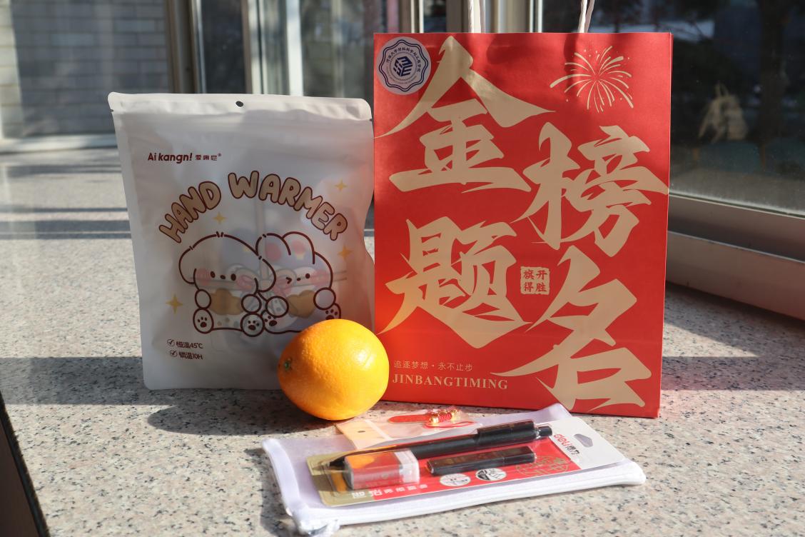 随后,辛绍权副书记与蒋旦悦老师分别为两校区考研学生亲手发放了学院精心准备的“考研加油包”。每份礼包都承载着学院对学子们的真挚祝福与殷切期望,每份礼包都承载着学院对同学们的殷切期望与暖心支持,祝愿大家在考场上沉着应战、下笔有神,在奋斗的路上始终感受到来自学院的陪伴与力量。