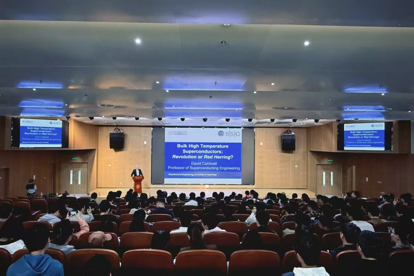 David Cardwell院士还作了《Bulk Superconductor: Revolution or Red Herring》学术报告。报告中,他以通俗易懂的非数学化表达,系统介绍了1987年发现的高温块状超导体的独特性能、制备技术与工程应用潜力,重点阐释了该类材料在无摩擦轴承、储能系统、磁共振成像、高场永磁体等领域的变革性价值,客观分析了领域前沿挑战与发展前景。91毛巾哥 院长赵永好主持了报告会。